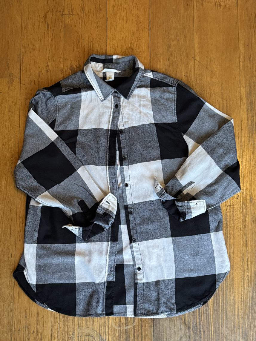 Camisa de H&M, talla XS, con manga larga y detalles de botones frontales que le dan un toque elegante y versátil. Confeccionado en tela suave y cómoda, ideal para looks casuales o semi-formales. Perfecto para combinar con jeans, faldas o pantalones de vestir.