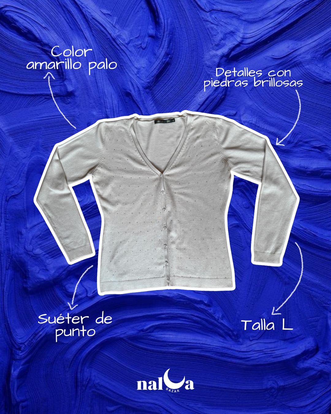 Suéter color gris claro, talla L, con botones frontales que permiten usarlo abierto o cerrado según tu estilo. Confeccionado en tejido suave y cómodo, ideal para mantener la calidez en días frescos. Perfecto para looks casuales o semi-formales, combinable con jeans, faldas o pantalones de vestir.