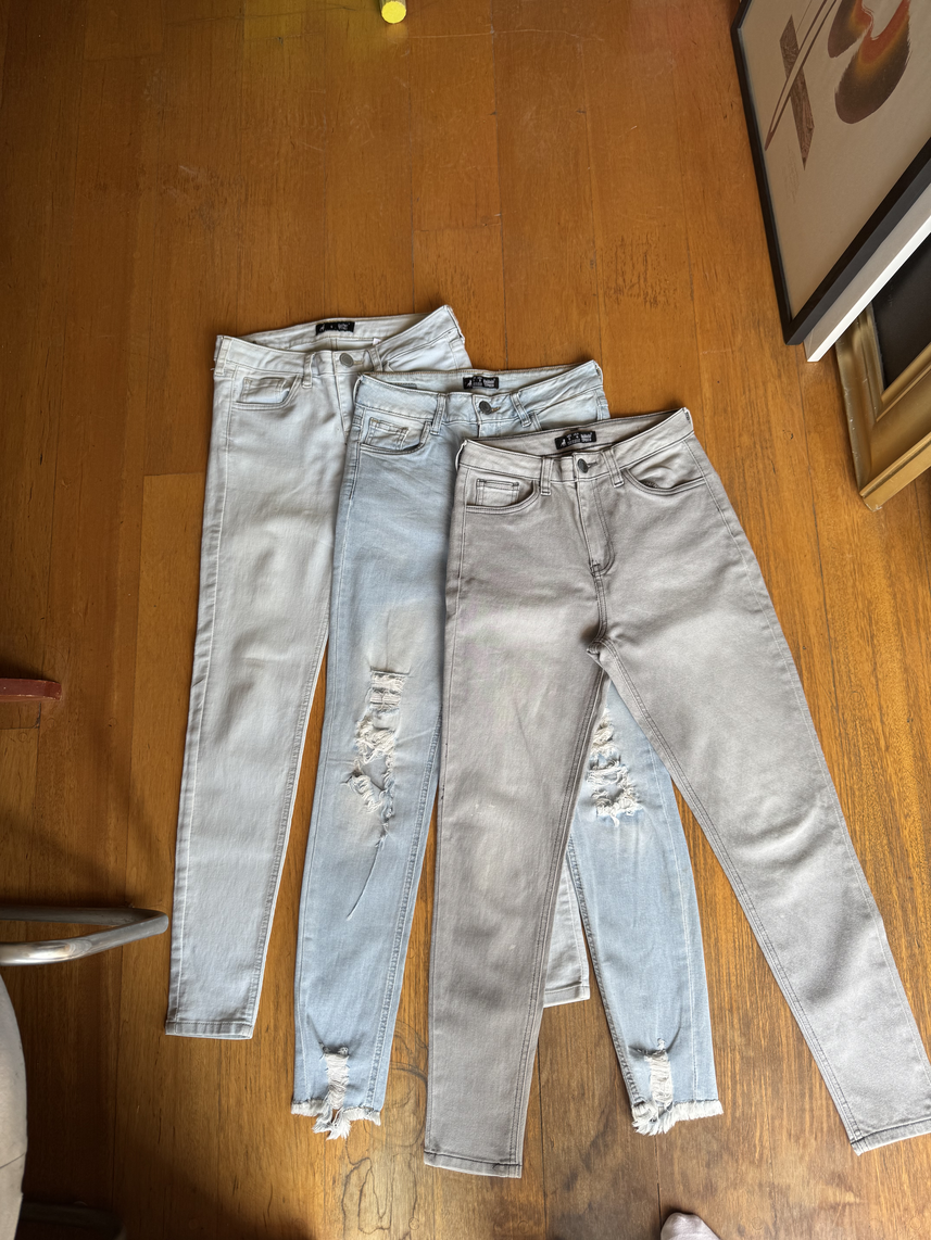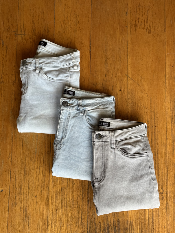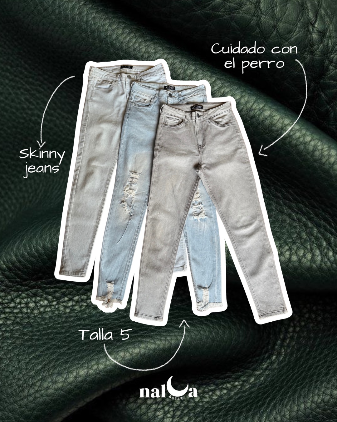 Este trío de pantalones Cuidado con el Perro ofrece lo mejor del estilo urbano y la comodidad diaria. Incluye tres jeans en tonos gris, azul claro y deslavado, confeccionados con mezclilla resistente y flexible para un ajuste perfecto. Ideales para combinar con camisetas, sudaderas o blusas y crear looks modernos y casuales.