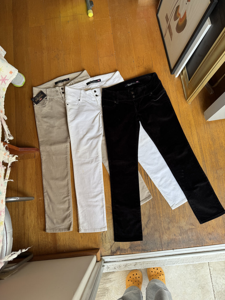 Este trío de pantalones en negro, blanco y café ofrece la combinación perfecta de estilo y funcionalidad. Confeccionados con materiales resistentes y cómodos, cada prenda mantiene su forma y proporciona un ajuste ideal.
